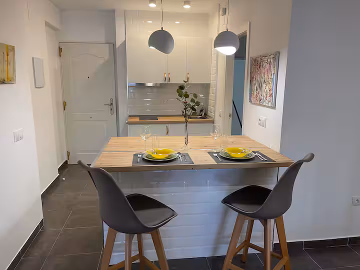 Es un apartamento reformado recientemente con terminaciones de altas calidades. Equipado con TV conectada mediante Internet para poder visualizar múltiples cadenas extranjeras. Dispone de aire acondicionado y calefacción. Ideal para parejas.»El mar esta a 5 minutos a pie desde la urbanización.
